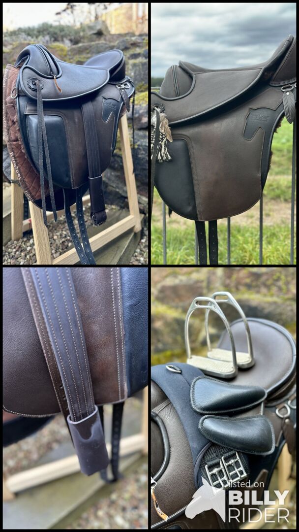 Akcesoria: * Oryginalny pokrowiec / podkładka pod siodło bezterlicowe z * Różne wkładki piankowe, dzięki którym siodło może być indywidualnie dopasowane do konia lub ponownie wyściełane. * Szary Zwiesel (MI) * Szerokie strzemiona (jak nowe) * Neoprenowy krótki popręg (jak nowy) * Używane strzemiona