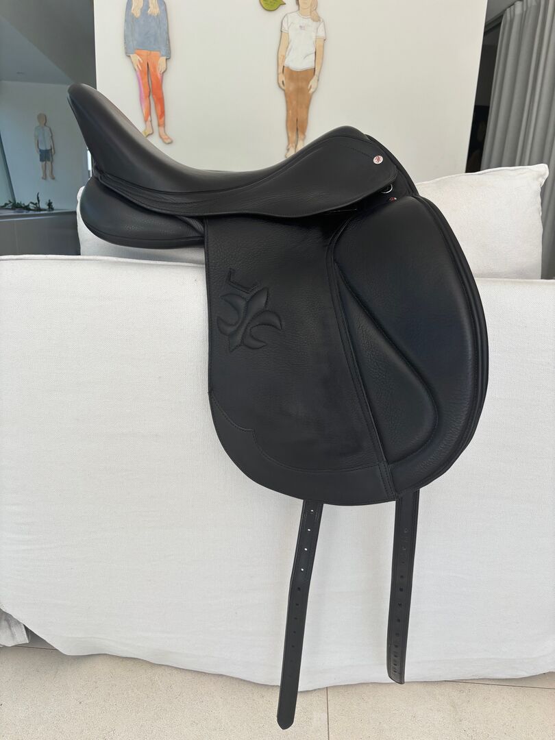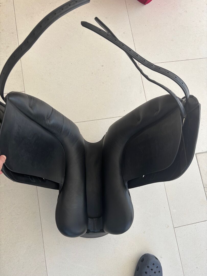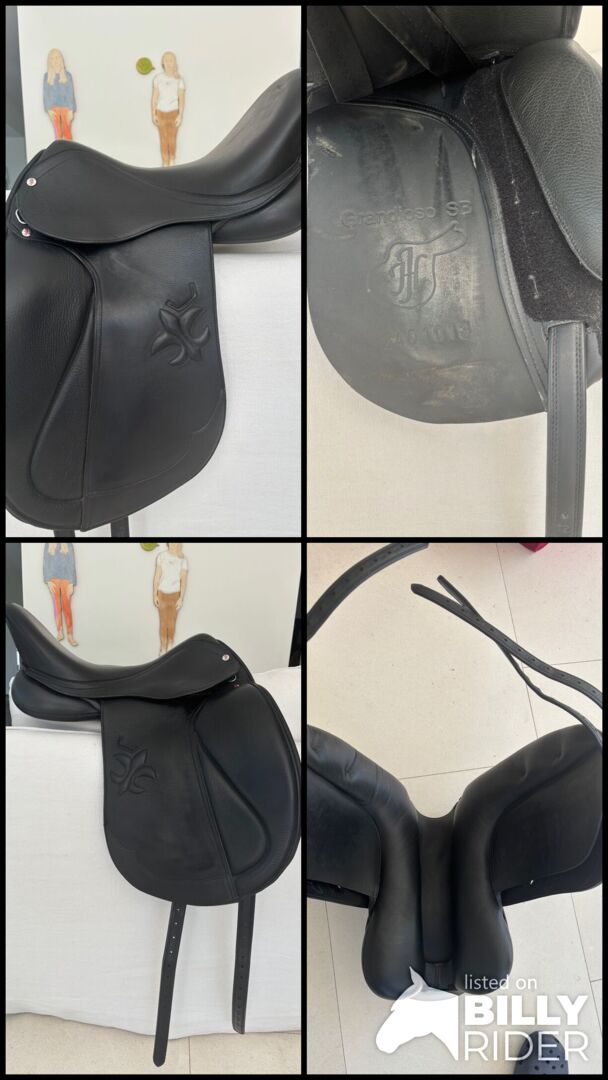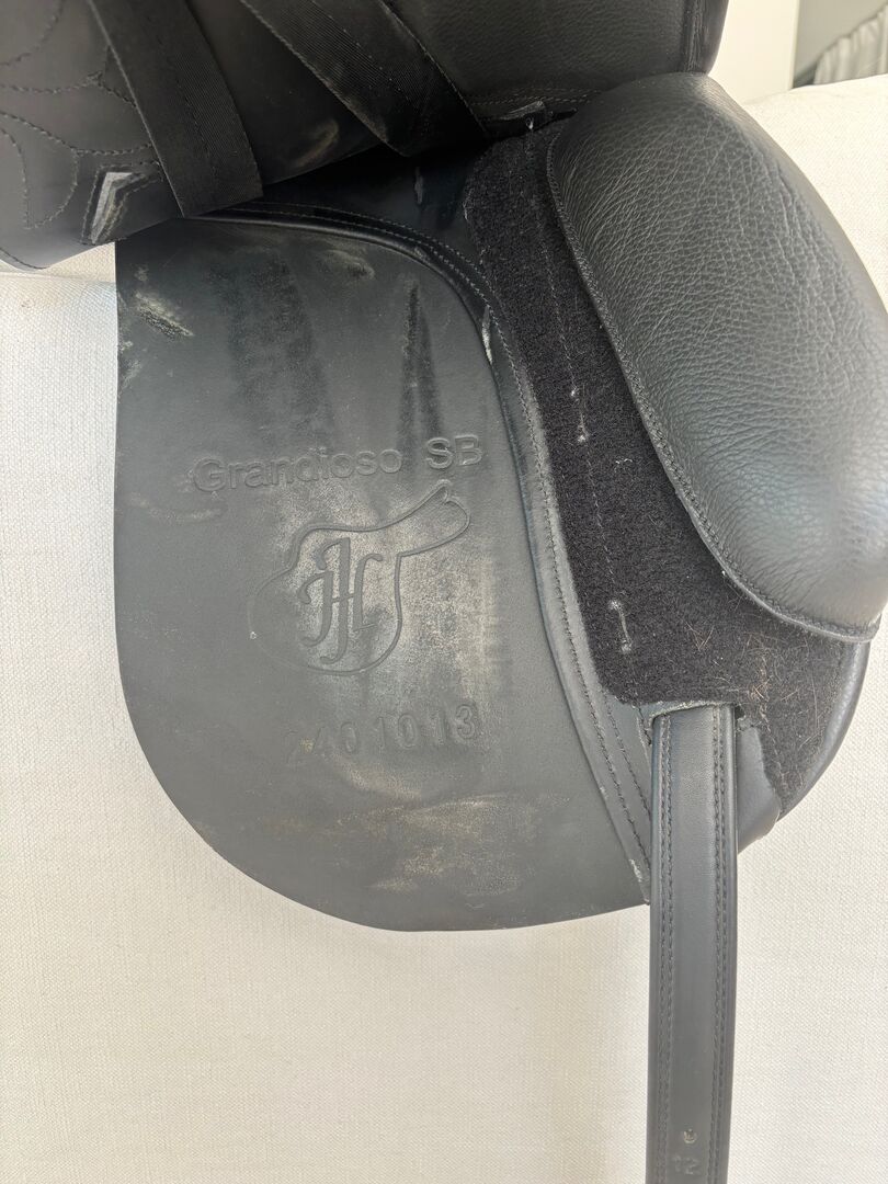 Miętowe siodło ujeżdżeniowe Josef Hildmann Grandioso Special 17" - Siodło ujeżdżeniowe JH Grandioso Special 17" Szlachetny, elegancki design wykonany z czystej, przyjemnie miękkiej skóry cielęcej. Szerokość łęku można regulować za pomocą bezstopniowej płyty ze stali nierdzewnej. Zapewnia to możliwość dopasowania siodła do konia w dowolnym momencie na miejscu. Panele są wypełnione wełną z włókien syntetycznych, która nie zbryla się i zapewnia przyjemne uczucie dla konia. Siodło jest również wyjątkowo lekkie. Panele na rzepy umożliwiają zmienne dopasowanie do jeźdźca. Nowa cena wynosiła 4 800 euro. Pierwsza własność, zakup 05/2024 17 ", w tym długie i krótkie rolki kolanowe, siodło i wyściółka jak nowe, ponieważ tylko 3 miesiące w użyciu i zadbane. W zestawie również krótki skórzany popręg i wysokiej jakości ochraniacz na siodło. Możliwa wysyłka lub odbiór w Wiedniu / okolicach.