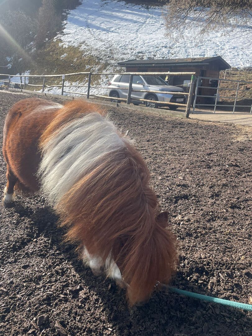 Mini kucyk ogier - Mini kucyk na sprzedaż urodził się 9 czerwca 2024 roku. Ze swoim gniadym umaszczeniem i długą grzywą przyciąga wzrok. Emilio jest kowalem i ładowaczem i opanował źrebięce ABC. Posiada paszport. Ostateczny rozmiar: ok. 90 cm