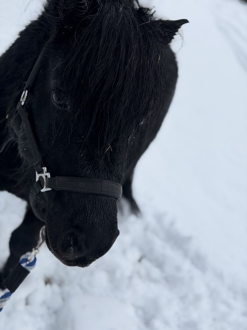 Klecks to kompaktowy, silnie zbudowany mini-shetty z piękną, gęstą grzywą i przyjaznym wyrazem twarzy. Jest uroczy w codziennej obsłudze, kocha ludzi i bardzo dobrze zna codzienną rutynę w stajni.