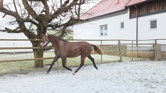 Młoda klacz do skoków/zawodów - Urodzona w czerwcu 2023 roku Come One B to bardzo zorientowana na ludzi i przytulaśna klacz z mnóstwem uroku i świetnym charakterem. Jest zawsze dobrze wychowana, nieskomplikowana i ma silne nerwy w codziennej obsłudze. Kowale, pielęgnacja, prowadzenie - żaden problem. Jest regularnie odrobaczana, szczepiona i pielęgnowana.