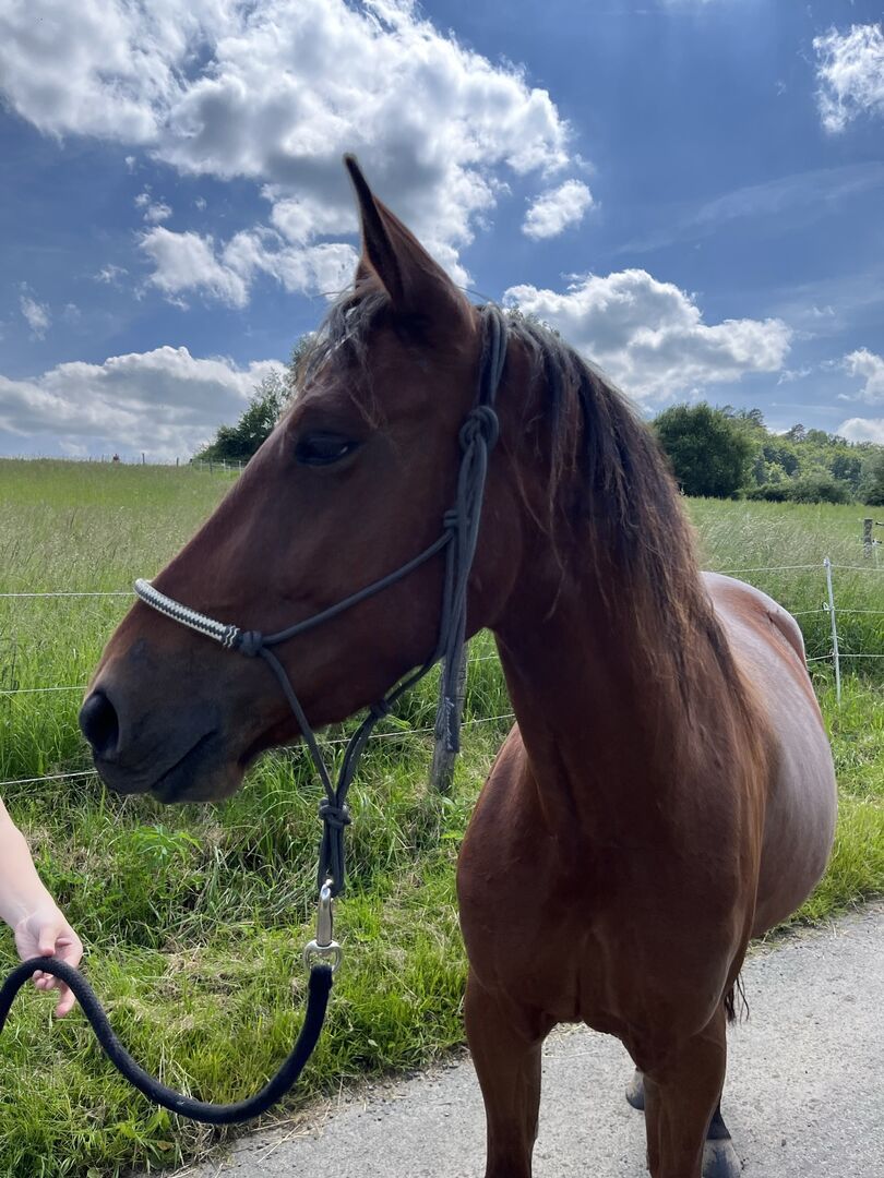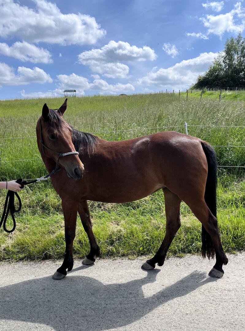 Młoda klacz na sprzedaż - ***No distress sale*** ***Suplement, na początku marca miała wzrost 1,48.*^* 4-letnia klacz szuka idealnego domu. Niektóre rzeczy w życiu układają się inaczej, niż sobie wyobrażamy. Tak też było w tym przypadku. Nasze dziecko miało być moim potomstwem. Ale teraz nadszedł czas, by przyznać przed samym sobą, że nie jestem odpowiednią osobą dla tego kucyka. Po prostu nie mamy ze sobą nic wspólnego, a ja po prostu nie mam czasu, by spędzać z nią wystarczająco dużo czasu, by stworzyć tę więź. Zdecydowanie istnieje osoba, która jest odpowiednia dla tego kucyka i szukam DOKŁADNIE TEJ OSOBY. Nie mogę powiedzieć nic złego o Baby. Nie kopie, nie gryzie, nie dosiada. Jest łatwa w prowadzeniu i stara się cię zadowolić. Jest też zawsze grzeczna u kowala. Jednak z powodu braku czasu do tej pory niewiele więcej się z nią działo. Teraz byłby czas na rozpoczęcie solidnego podstawowego programu szkoleniowego. Baby nigdy nie chorowała, nie kulała ani nie wykazywała żadnych innych nieprawidłowości. Jest również w pełni zaszczepiona i regularnie odrobaczana. Zasadniczo nic nie stoi na przeszkodzie, aby ktoś od razu zaczął z nią pracować. Chcielibyśmy, aby Baby znalazła dom na całe życie, w którym będzie mogła żyć w stadzie i stawiać czoła wyzwaniom. Zachęcamy do wysłania nam wiadomości, w której krótko przedstawisz siebie i swoje pomysły. Zapytania typu "Jaka jest ostatnia cena" i "Czy jeszcze tu jest?" pozostaną bez odpowiedzi. Baby ma się u nas dobrze. To nie jest sprzedaż w trudnej sytuacji. Mamy po prostu nadzieję, że znajdzie dom, w którym będzie mogła być adoptowana zgodnie ze swoją jakością!