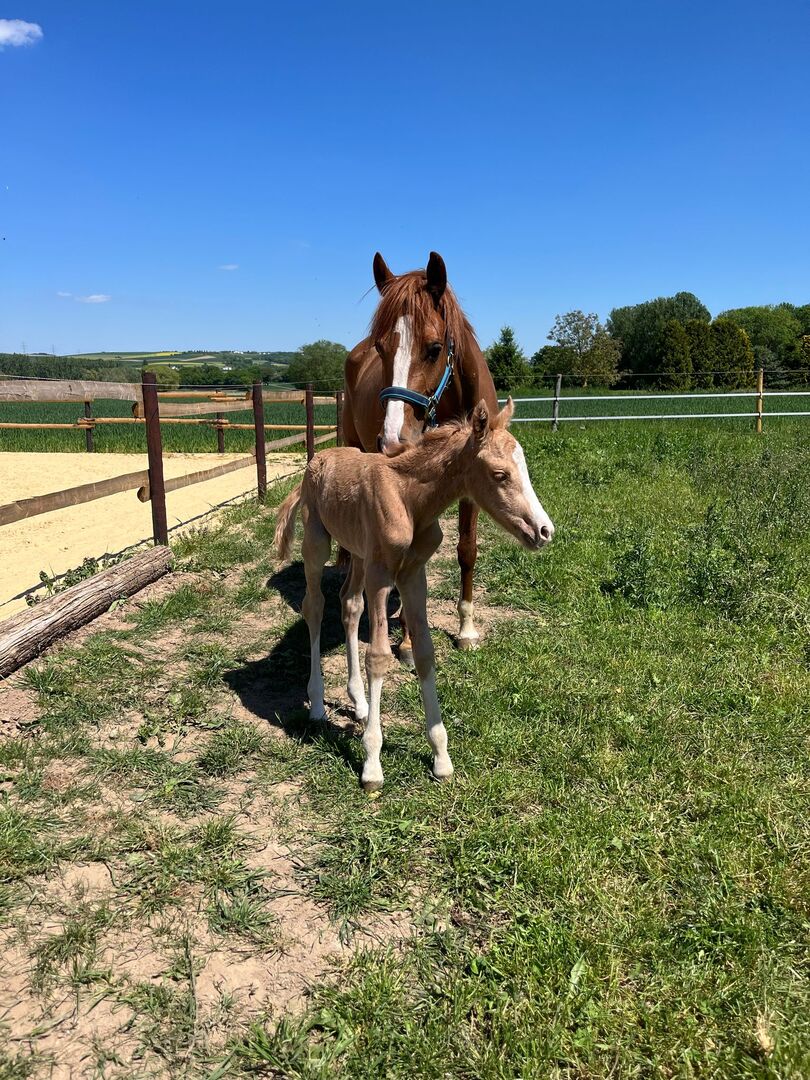 Młoda, szlachetna, utalentowana - klacz z potencjałem do wygrywania - Ta urocza klacz łączy w sobie najlepsze linie krwi z doskonałymi podstawowymi chodami i charakterem, który sprawia radość podczas codziennej jazdy. Obecnie wciąż surowa, ale z ciekawską, zrównoważoną naturą, ma wszystko, czego potrzebuje przyszły kucyk wstążkowy.