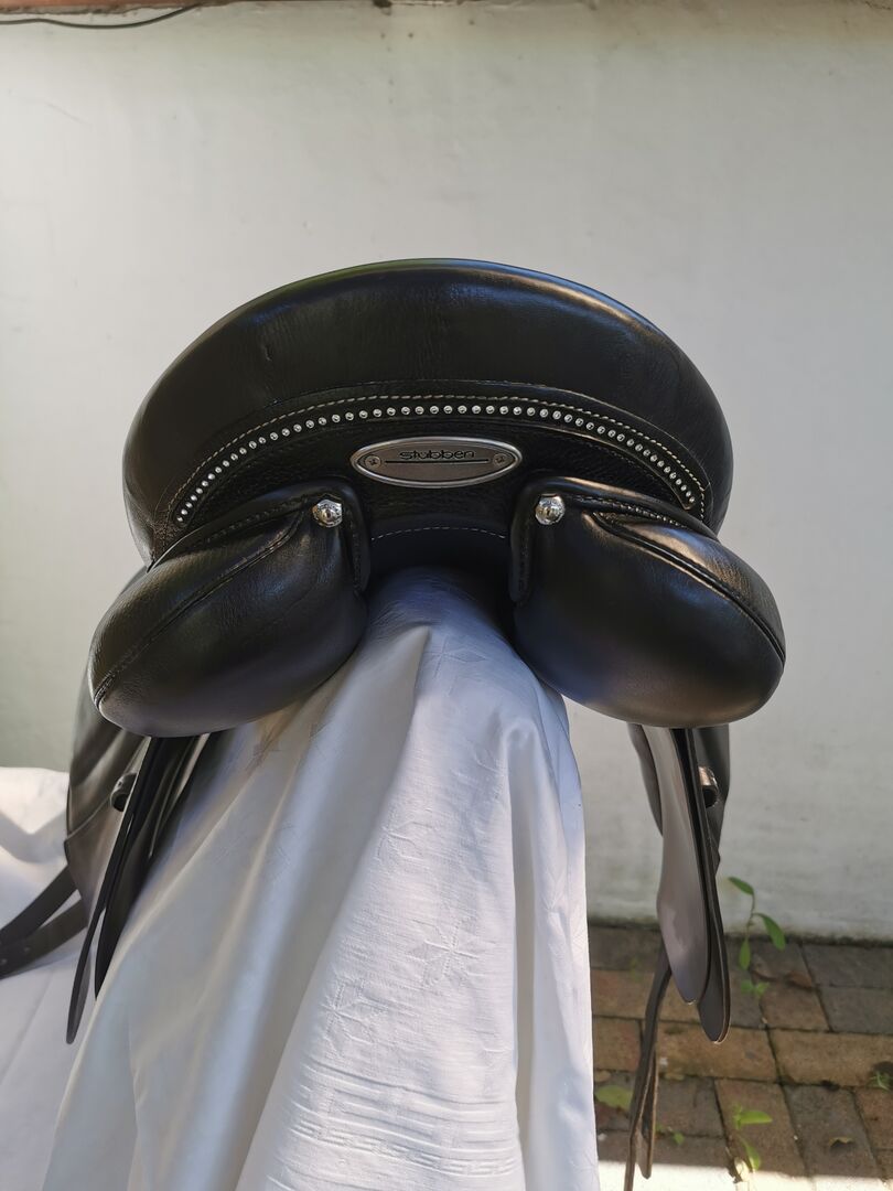 Młodzieżowe siodło ujeżdżeniowe Stübben Juventus 17/32 zvk. - Ponieważ moja córka niestety z niego wyrosła, oddajemy nasze mało używane, super wygodne siodło ujeżdżeniowe Stübben Juventus Youth 17 cali i 32 (normalna) komora. Jak sama nazwa mówi, siodło jest specjalnie wykonane na potrzeby dzieci/młodzieży. Najlepszy stan patrz zdjęcia, świetne elementy rhinestone i czarna lakierowana krawędź z przodu, pędy jak nowe, panele gładkie i proste, długie grube rzepy (krótsze / mniejsze mogą być dołączone), małe mini dziwactwo, skądkolwiek to pochodzi (ostatnie zdjęcie w prawym górnym rogu) NP 2,400.00