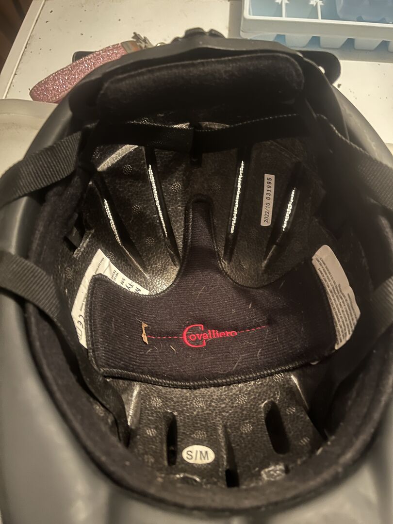 Młodzieżowy kask jeździecki COVALLIERI, rozmiar S/M, czarny - Młodzieżowy kask jeździecki, rozmiar S/M, czarny, bez kolizji, mało noszony. Prawie żadnych śladów zużycia.