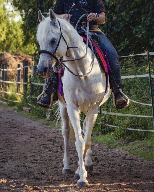Pracuję zgodnie z podejściem klasycznego jeździectwa i starego kalifornijskiego western riding (= nacisk na gimnastykę i naturalną wyprostowaną postawę, a ostatecznie na zebranie konia).