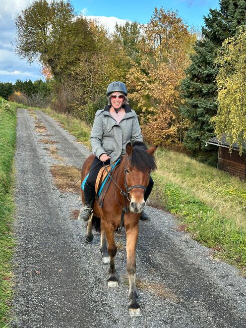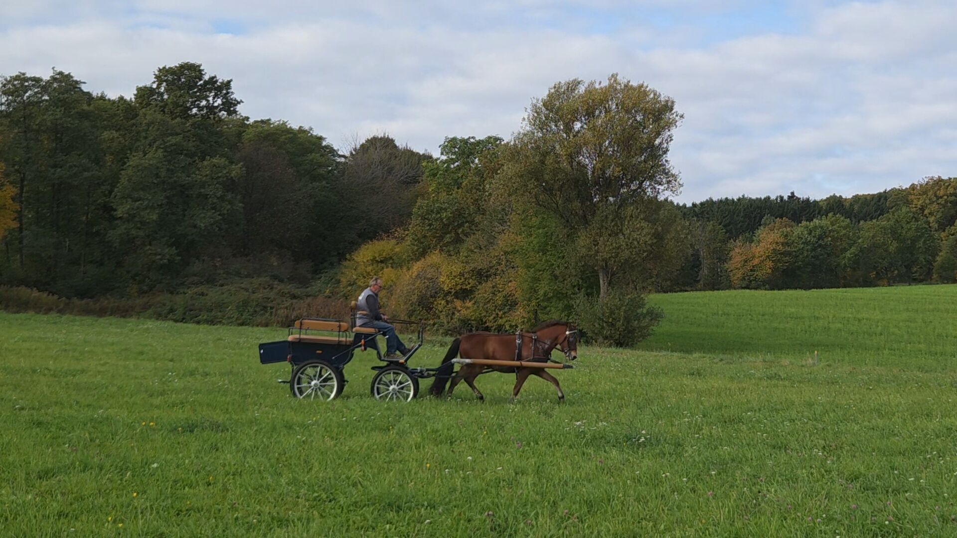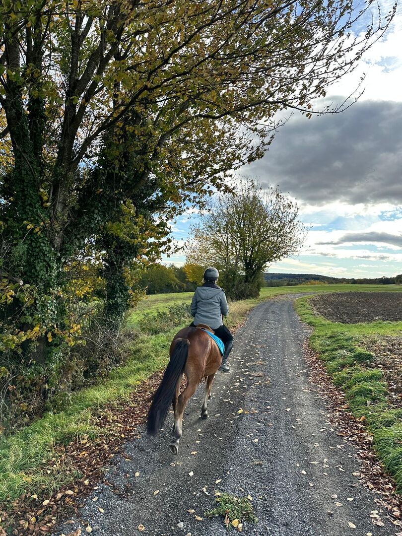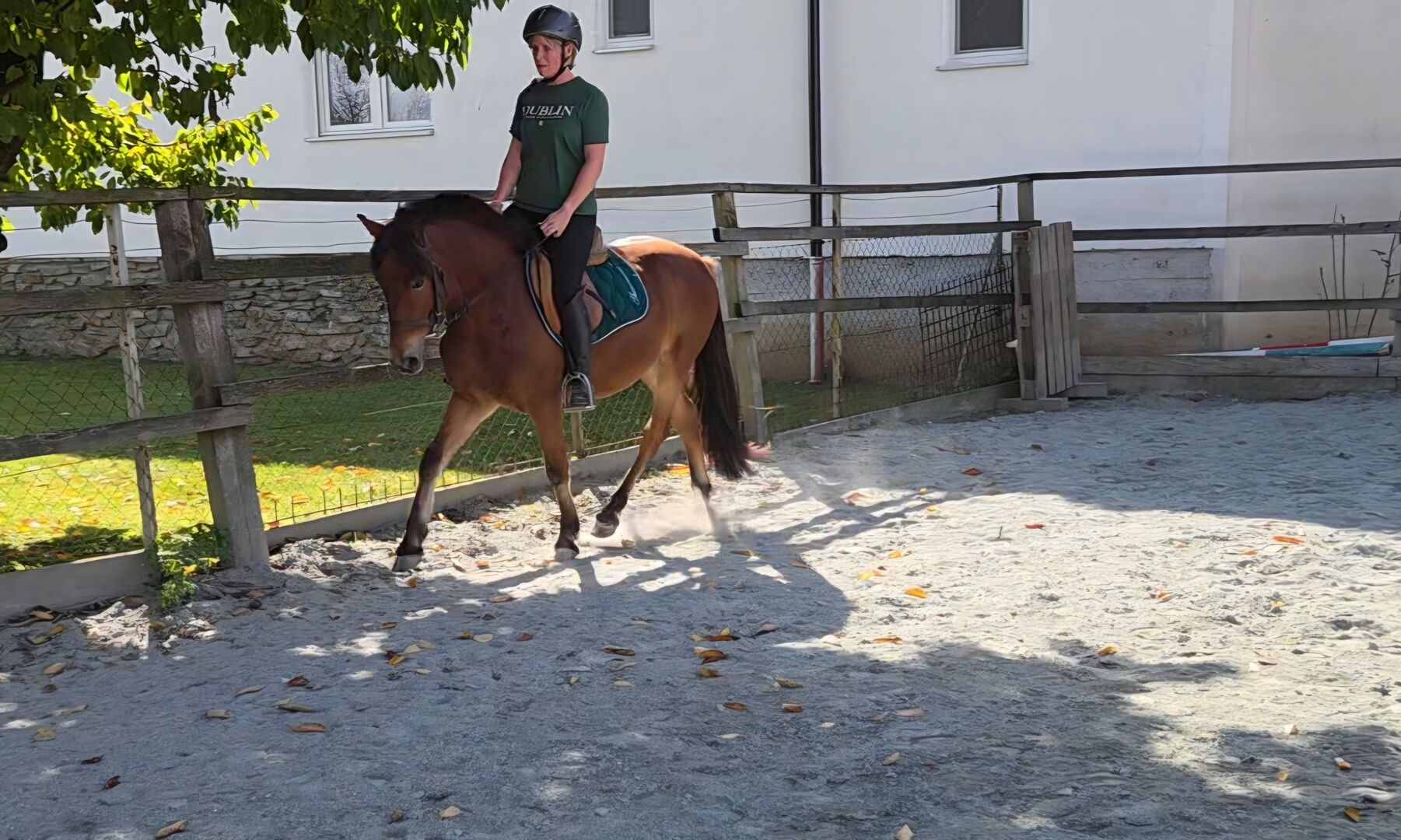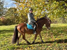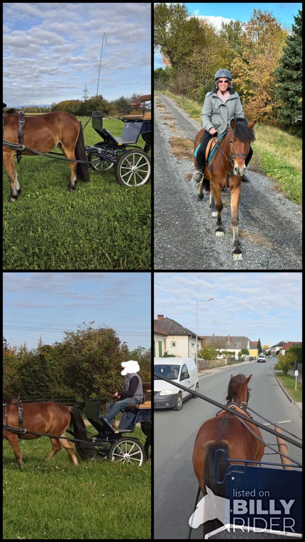 Ma silne nerwy, nie jest nerwowy i dobrze radzi sobie z większymi końmi. Ze względu na jego wiek, oczywiście nie będzie on przeznaczony wyłącznie dla dzieci itp.... nie jest jeszcze niezawodnym koniem.... ale sposób, w jaki doświadczyłem go do tej pory, wykazuje najlepsze warunki wstępne, aby stać się naprawdę świetnym niezawodnym kucykiem.