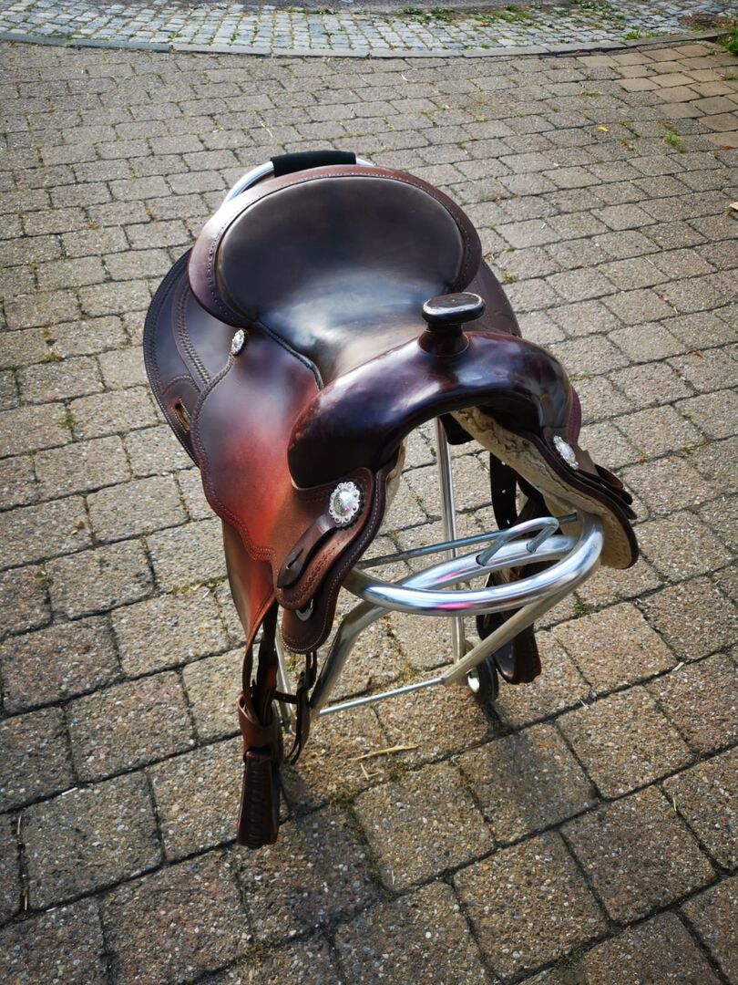 Montana Western Saddle - Sprzedaję używane siodło westernowe Montana. Był on zamontowany na wąskiej ćwiartce. Normalne ślady użytkowania, ale w dobrym stanie. Więcej zdjęć, jeśli jesteś zainteresowany