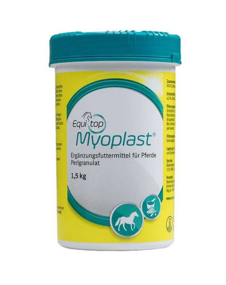 Equitop Myoplast - naturalne aminokwasy do budowy mięśni u koni Myoplast z gamy produktów Equitop firmy Boehringer Ingelheim to pasza uzupełniająca do budowy mięśni u koni. Wspomaga metabolizm mięśni u koni dzięki 18 ważnym aminokwasom z alg morskich i jest całkowicie wolny od dopingu. Wysokiej jakości kompleks aminokwasów zapewnia elementy budulcowe do produkcji białek przez organizm. Białka są ważną podstawą budowy mięśni, ich wydajności i utrzymania. Dobra podaż tych składników odżywczych wzmacnia efekt codziennego treningu i spowalnia rozpad mięśni podczas faz odpoczynku lub przerw w treningu. Skuteczne budowanie mięśni bez dopingu