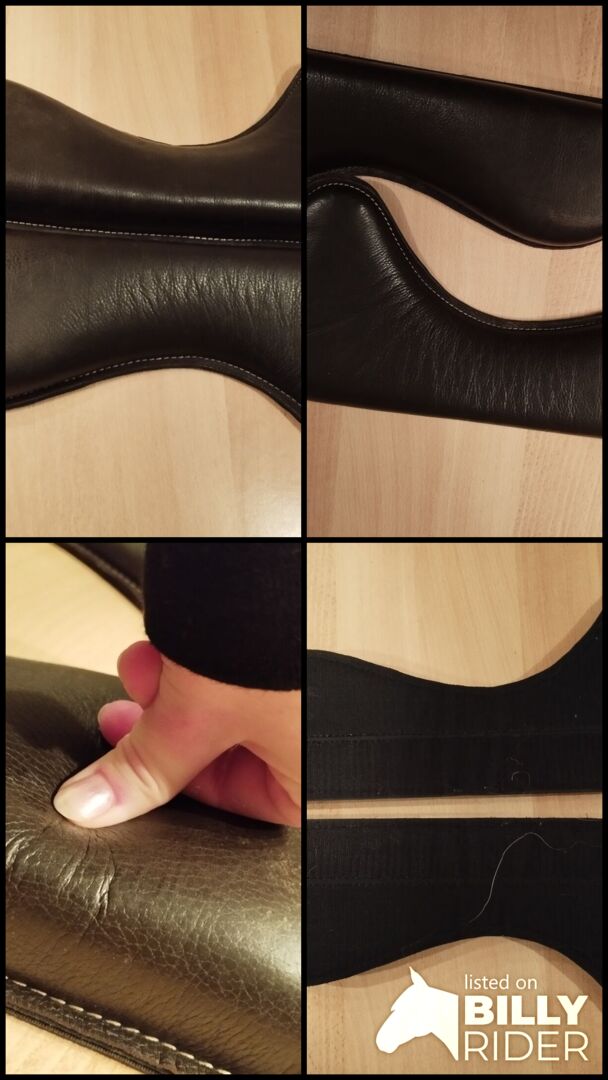NA SPRZEDAŻ Podkładka na rzep ujeżdżeniowa 43cm brązowa - Do sprzedania para ochraniaczy ujeżdżeniowych na rzepy w kolorze ciemnobrązowym o powierzchni styku 43cm. Powierzchnia rzepu wynosi 45,5cm. Ciągły 4cm, zwężający się na ramieniu. Na powierzchni rzepu znajduje się kilka włosków. Poza tym używane, ale czyste i funkcjonalne. Nadaje się na przykład do siodeł Hidalgo. Możliwa wysyłka.