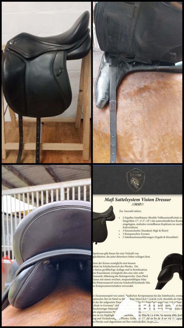 Na sprzedaż siodło ujeżdżeniowe Preiss - Siodło marki Preiss (rymarstwo na zamówienie od BaWü) czarne z 2018 roku, prawdziwe około 2 lat użytkowania Klapa siodła Ergofitt (klapa siodła mono) łęk 18 Poduszka L Klapa B Siodło ma klocki na rzepy Oddaję siodło, ponieważ już go nie używam. Jest przechowywane w suchym i ciepłym miejscu
