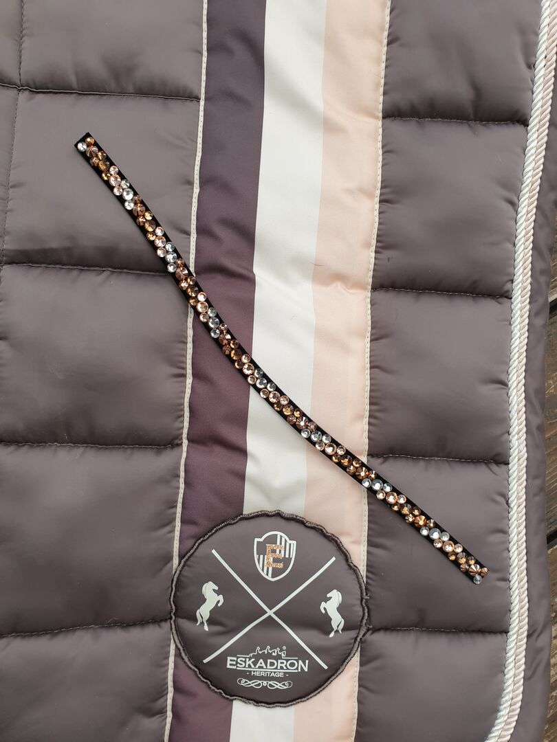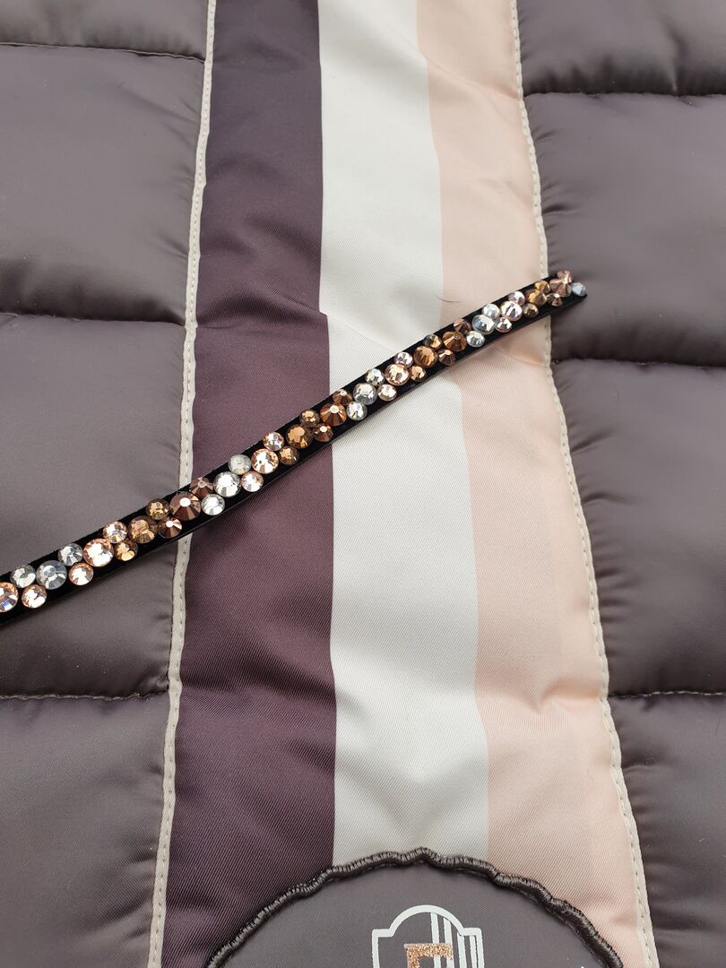 Nakładka (DIY) dla Magic Tack - Sprzedam ręcznie robioną wkładkę do systemu Magic Tack Swing. Rozmiar pasuje do modeli WB, VB i Pony. Składają się z plastikowych dżetów w kolorze srebrnym, brązowym i różowym, które w świetle dziennym błyszczą tak pięknie jak szklane kamienie. W razie zainteresowania można sprzedać również z opaską na czoło.
