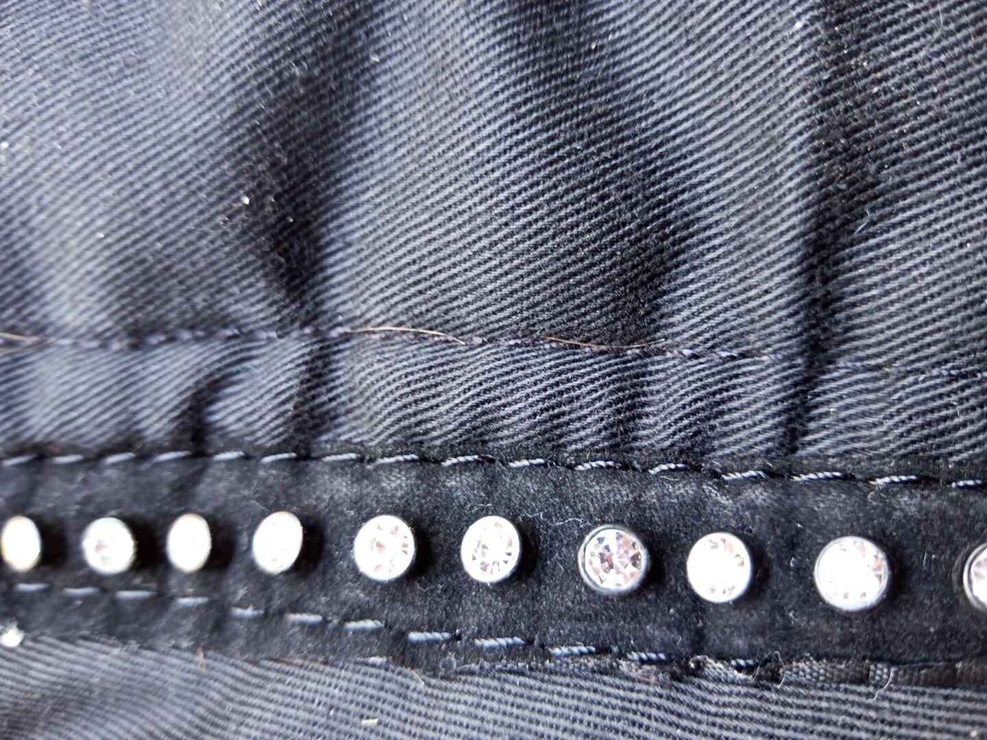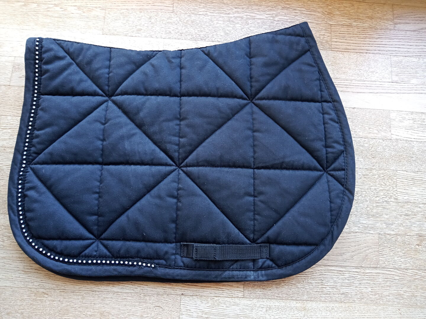 Nakładka na siodełko czarna - strass - Sprzedam czarną podkładkę pod siodło z dżetami firmy Fouganza. Rozmiar to (pony) eventing. Jest on używany, ale czysty i w dobrym stanie.
