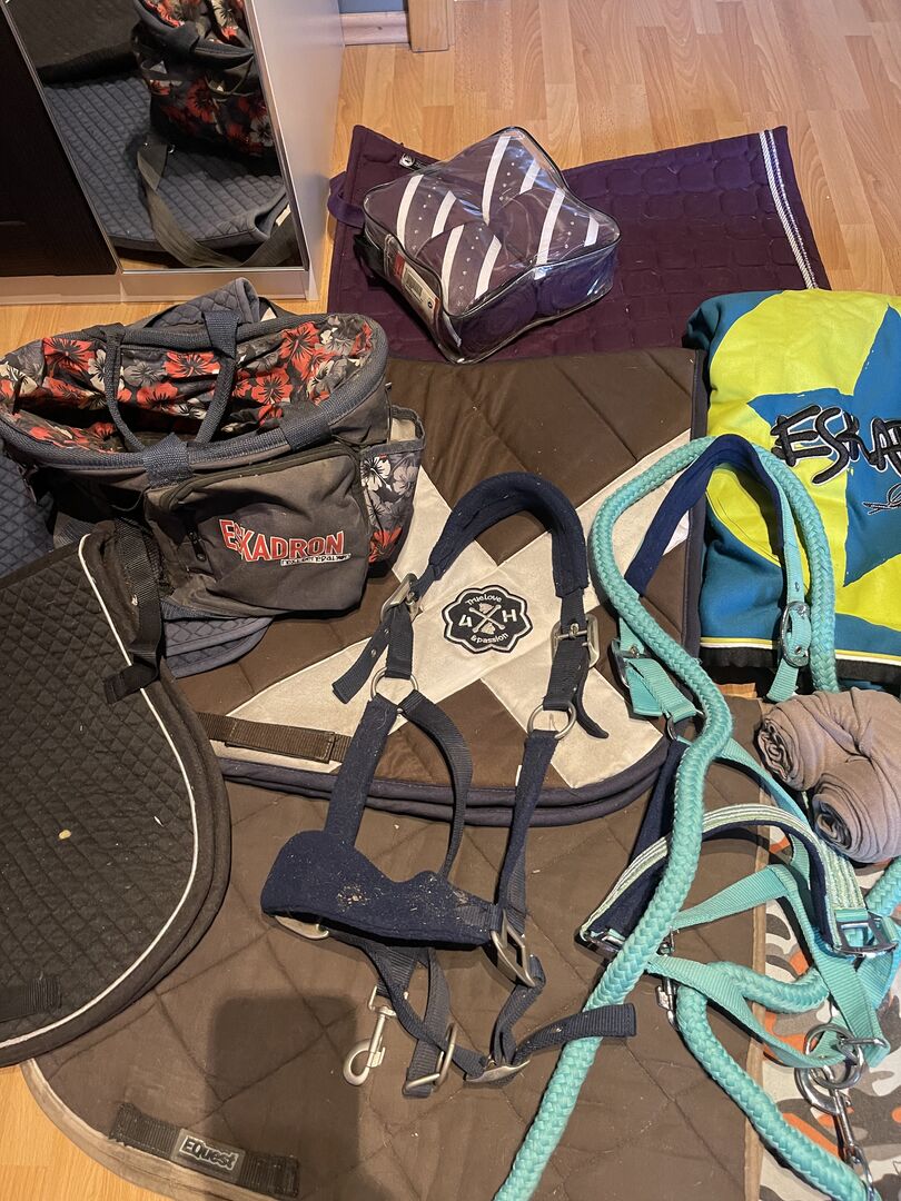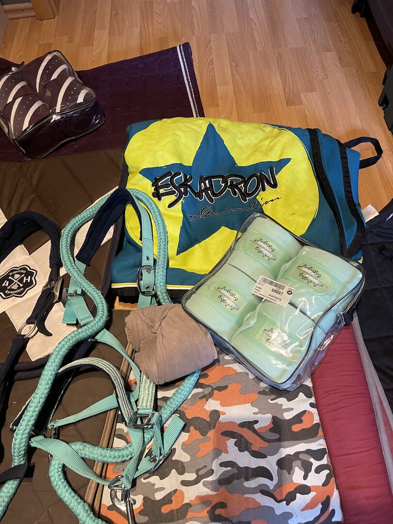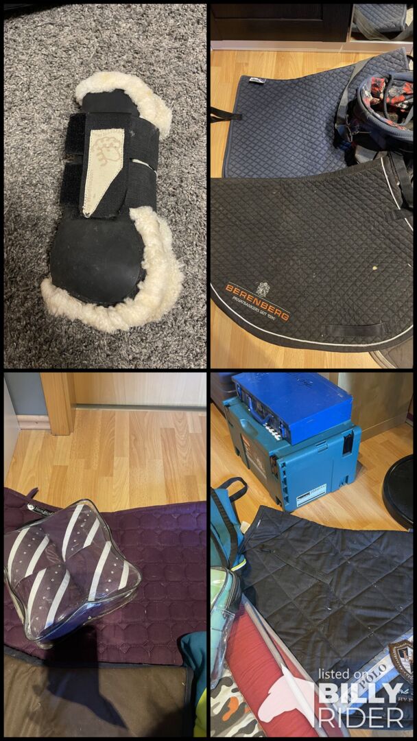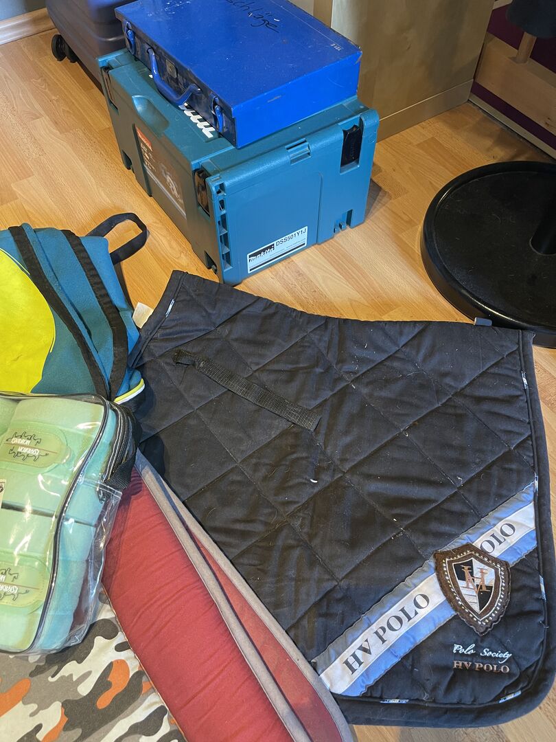 Nakładki na siodła, getry, bandaże.... - Witam, mam na sprzedaż kilka podkładek pod siodło i co. Niektóre z przedmiotów są fabrycznie nowe lub bardzo rzadko używane. Podkładki pod siodło w VS i DR Gaitery w wersji M, WB Halter Cob Derka potowa 155 (XL) Torba do groomingu Podkładka z jagnięcej skóry WB Bandaże WB
