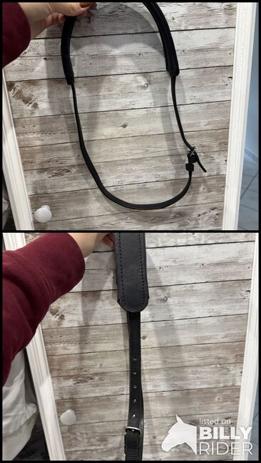 Nakrycie głowy Shetty - Ogłowie do wędzidła Shetty. Używany tylko na drewnianym koniu, od dłuższego czasu znajduje się w piwnicy. Sprzedaż prywatna, dlatego nie ma gwarancji ani zwrotu. Możliwa wysyłka za opłatą.