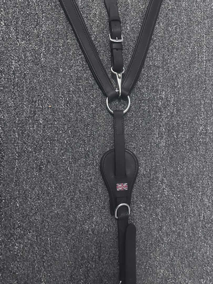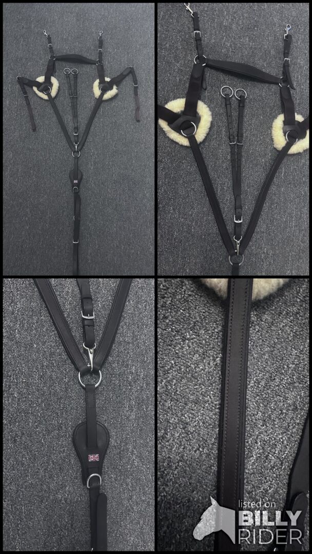 Napierśnik / martingale - Na sprzedaż bardzo dobrze zachowany napierśnik. Nowa cena 94,90 Wygląda prawie jak nowy. Skóry są wyprane i zapinane na rzepy. Kolor brązowy i rozmiar WB. Wielostopniowa regulacja.