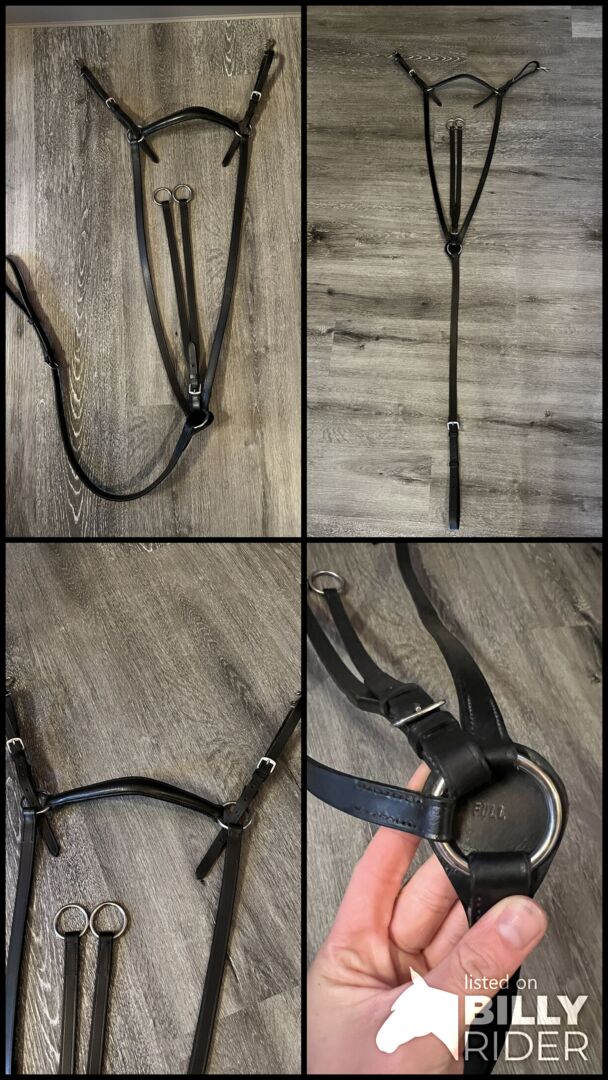 Napierśnik martingale Full WB Warmblood - Na sprzedaż używany, ale w bardzo dobrym stanie napierśnik z odpinanym karabińczykiem. Skóra jest miękka, nie twarda ani porowata. Na napierśniku znajdują się dwa haczyki, dzięki którym można go przymocować do siodła. Nie ma haczyka do popręgu, ale sprawdzę jeszcze raz, czy nadal go mam, w takim przypadku zostanie dołączony. Napierśnik był rzadko używany, więc jest w doskonałym stanie. Nie jest mi już potrzebny, więc mogę go zdjąć.