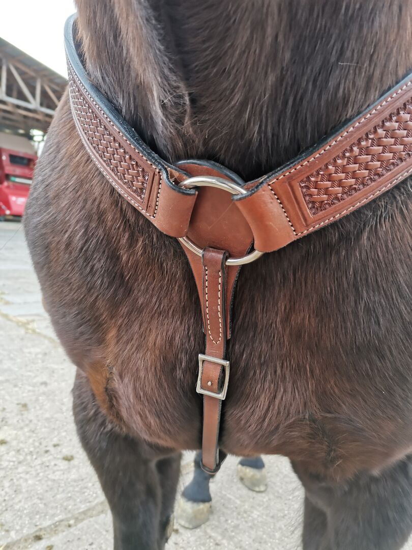 Napierśnik - western - WB / pełny - kosz - Stonedeek - W ofercie mało używany, a więc jak nowy napierśnik. > orientacja zachodnia > koszyk ze znakiem firmowym > Kolor Latigo brown > Rozmiar WB /Full > Krämer Stonedeek > Wysokiej jakości prawdziwa skóra