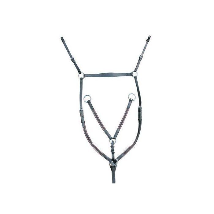 Napierśnik z martingale, regulowane, elastyczne paski - Czarny skórzany napierśnik, używany do skoków, o regulowanej długości, dzięki czemu nadaje się dla kucyków i dużych koni. W razie potrzeby można dokupić ochraniacz na futro, który zawsze dodatkowo dołączam.