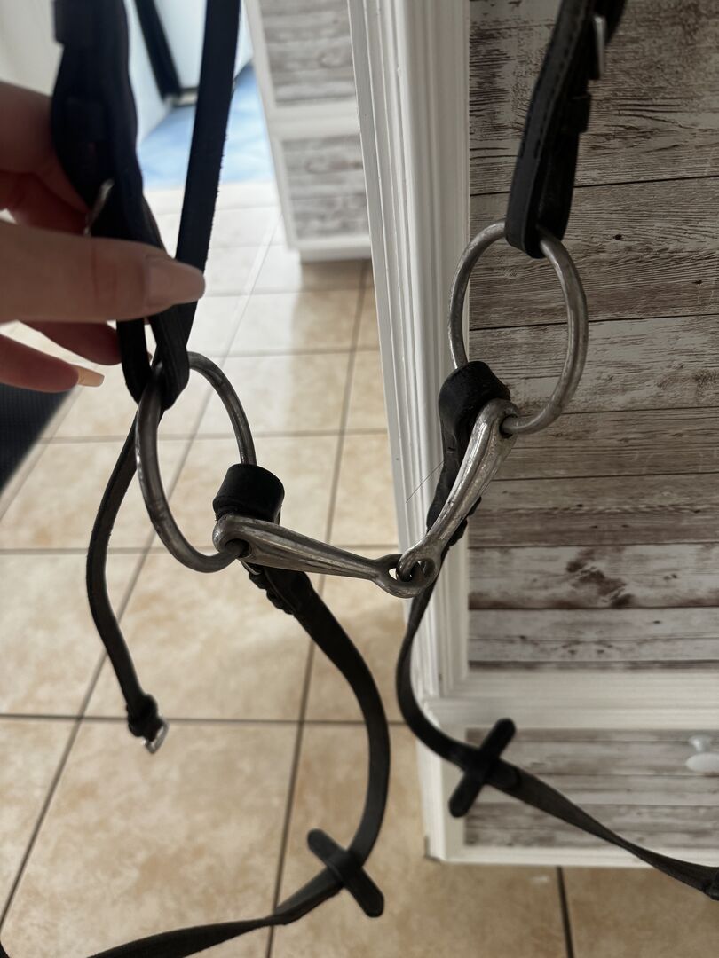 Napięty rozmiar Cob - Snaffle w rozmiarze Cob Z opaską na czoło, bitem 12,5 cm i wędzidłem. (bez paska na nos!) W dobrym stanie. Sprzedaż prywatna, dlatego nie ma gwarancji ani zwrotu. Możliwa wysyłka za pobraniem.
