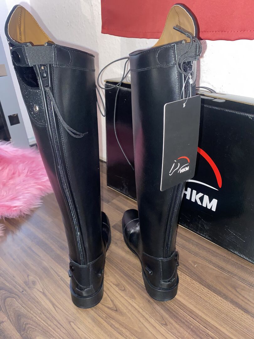 Hiermit möchte ich die HKM Reitstiefel Beatrice in Schwarz Schuhgröße 38 in normal/extra weit verkaufen. Die Reitstiefel sind komplett neu und wurden nur 1x Zuhause anprobiert.