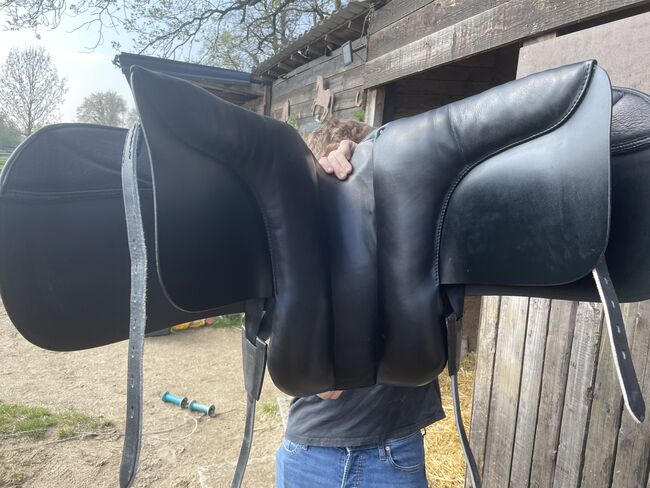 Siodło zostało zakupione jako nowe w kwietniu 2022 roku za 2,890 € (oryginalna faktura jest dostępna jako zdjęcie i zostanie dołączona do zakupu). Ze względu na problemy z dopasowaniem siodło było używane tylko przez około 3 miesiące. Od tego czasu był przechowywany w pokrowcu na siodło, chroniony przed kurzem, ciepły i suchy w moim domu.