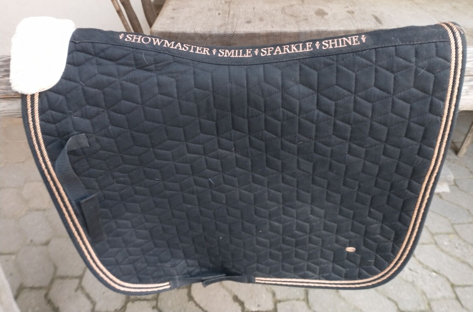 Neuwertig: Tolle Showmaster Schabracke – Smile * Sparkle * Shine schwarz/rosé.