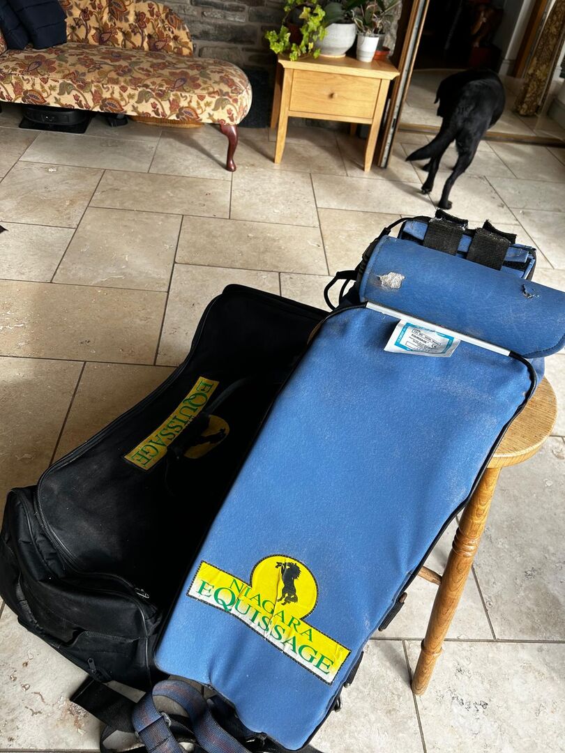 The well reknowned Equissage blue pad, used on a small yard, two small material tears as show in image, full working order, comes with a new battery. These wonderful massage belts are a huge asset to a horse, improving joint mobility and muscle relaxation, stimulating soft tissue whilst increasing blood flow. I noticed how it increased my horses' strides. Sadly no longer needed.