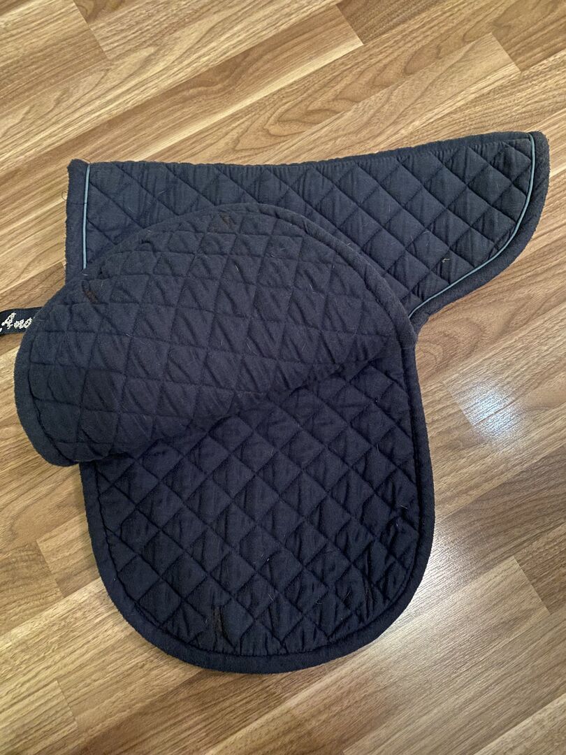 Niebieska bawełniana derka ujeżdżeniowa - Niebieska bawełniana derka ujeżdżeniowa z pętlami na rzepy.