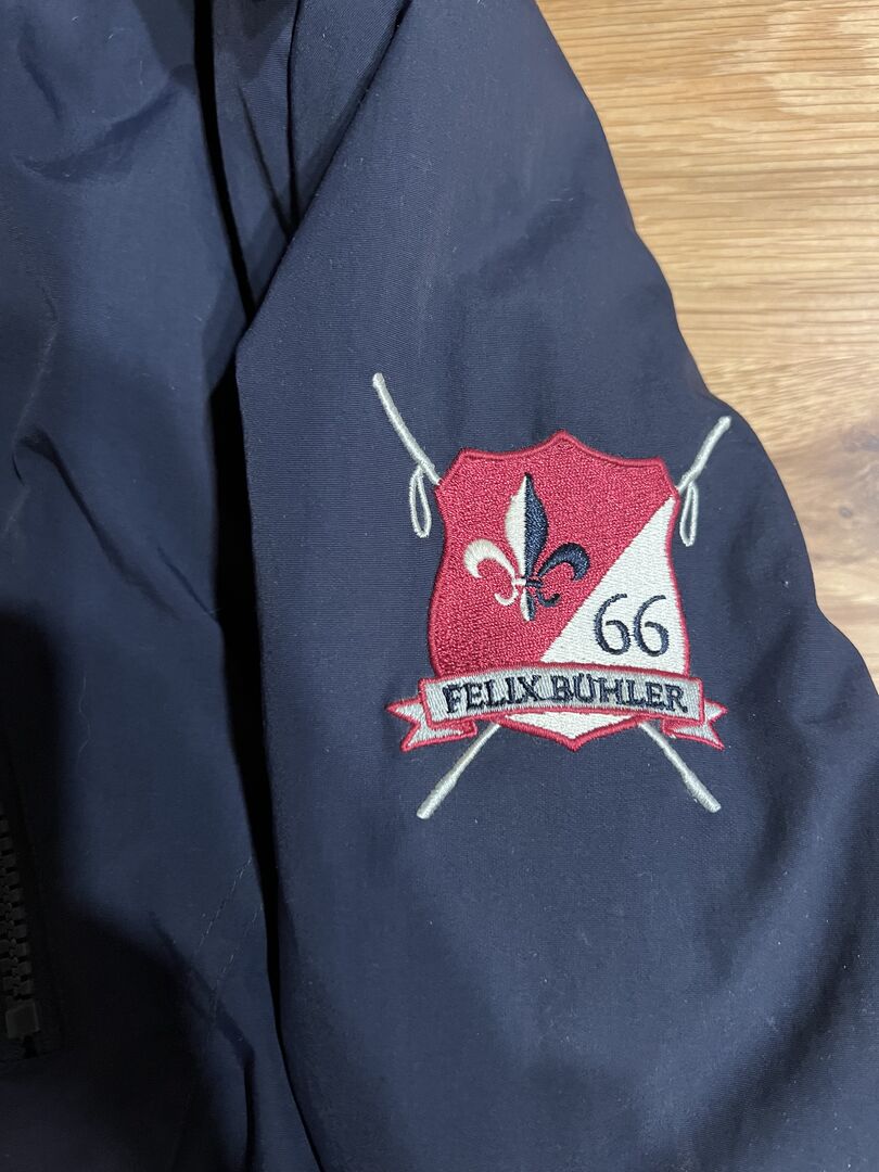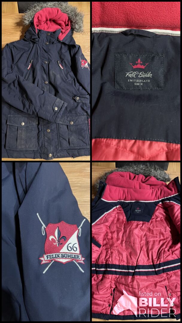 Niebieski płaszcz zimowy Felix Bühler rozmiar M - Oferuję granatowy płaszcz zimowy z różowymi detalami marki Felix Bühler w damskim rozmiarze M.