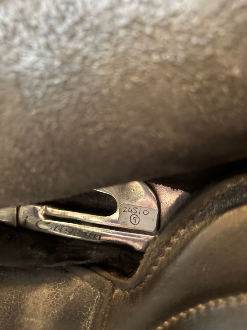 Niestandardowa ikona rymarska lot 18 - Icon flight z bawolej skóry i czarnymi patentowymi wykończeniami. Piękne siodło nie używane przez ostatnie 3 lata. Łęk siodła to 24 - nigdy nie był zmieniany.