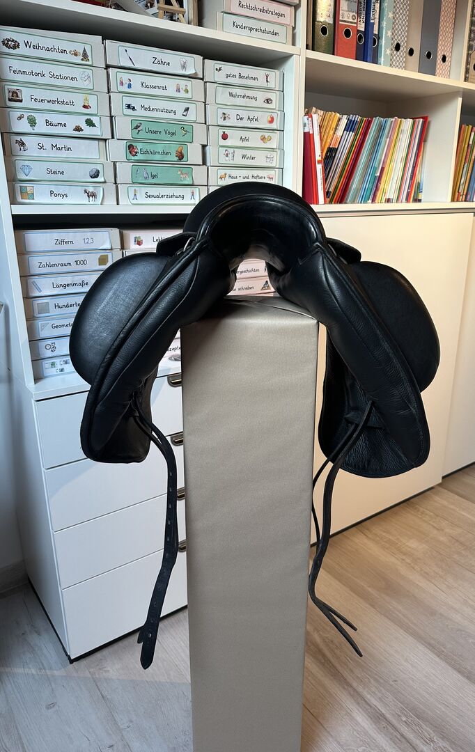 Niestandardowe siodło ujeżdżeniowe Icon Flight, 17,5 - Bardzo wygodne, przyjazne dla pleców (konia i jeźdźca!) siodło. Z powodu rezygnacji z jazdy konnej. Siodło było używane przez około 6 miesięcy i od tego czasu było suche i ciepłe.