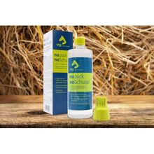 NoJuck NoSchupp 2-fazowy kompleks pielęgnacyjny butelka z aplikatorem na wszy i egzemę 250ml - Jeśli naturalna funkcja ochronna skóry i sierści zostanie zakłócona, czynniki wywołujące choroby skóry, takie jak roztocza (świerzb u koni) i wszy włosowe, mają ułatwione zadanie. Komary, takie jak meszki, również stanowią zagrożenie, ponieważ mogą wywoływać chorobę skóry znaną jako słodki świąd. Jesienne roztocza traw powodują bardzo swędzący wyprysk u wielu psów i koni, szczególnie na brzuchu i nogach.
