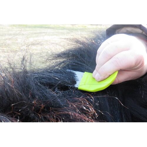 NoJuck NoSchupp pomoc w rozczesywaniu - OFERTA SPECJALNA - - Ułatwia wyczesywanie łupieżu, szczególnie w przypadku świądu u koni. - Zaokrąglone zęby sprawiają, że zgrzebło jest przyjemne w użyciu dla zwierzęcia, nawet w przypadku podrażnionej skóry. - Specjalny rozstaw zębów usuwa uciążliwe pasożyty, takie jak wszy włosowe u koni i innych zwierząt. - Skutecznie łagodzi dokuczliwe swędzenie