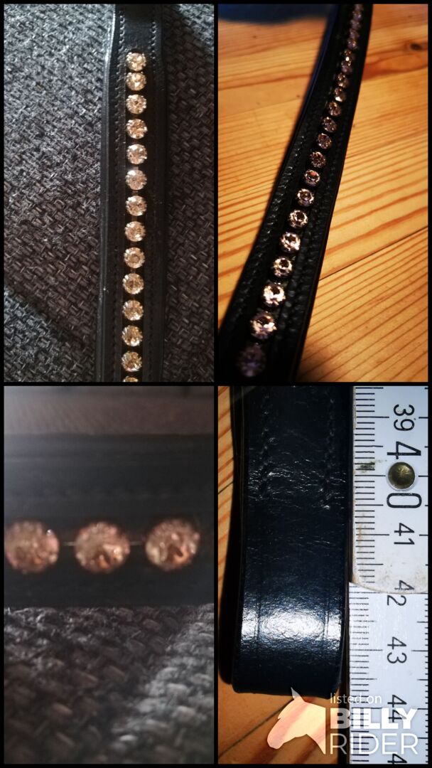 Nowa opaska na brew, czarna z kamieniami, rozmiar WB - Oferowany tutaj jest fabrycznie nowy, nigdy nie był na koniu, opaska z czarnej skóry z morelowymi brokatowymi kamieniami. Jego długość wynosi 43 cm. Niestety, kolor kamieni nie jest widoczny na zdjęciach. W każdym razie wygląda świetnie i jest czymś innym.