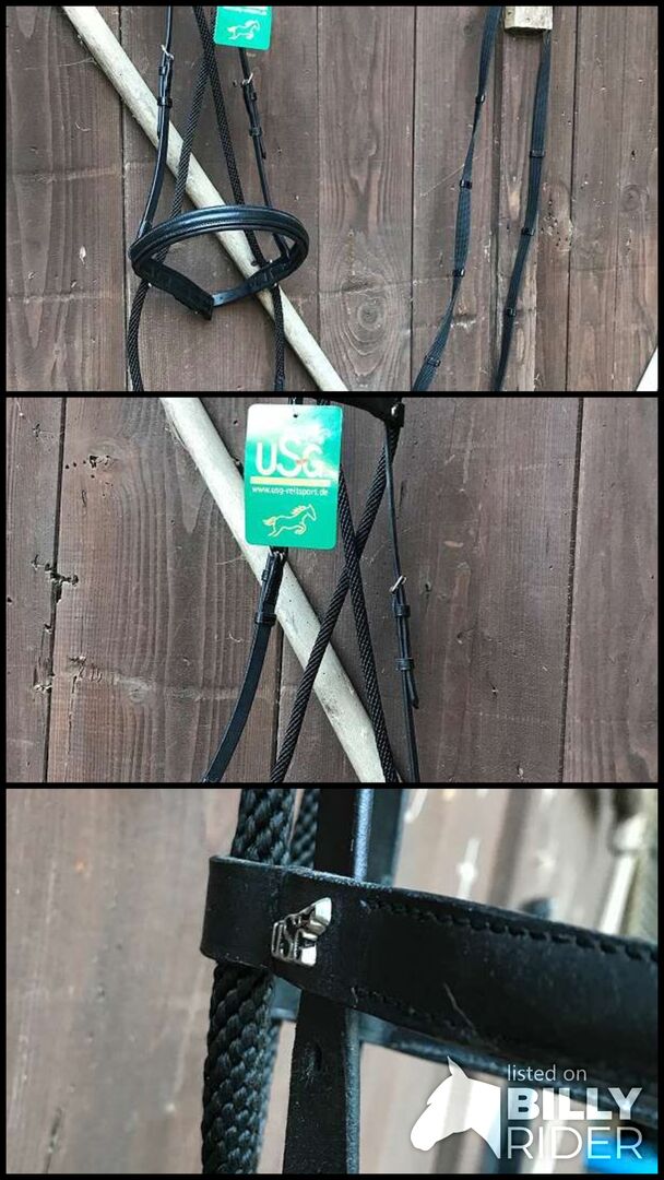 Nowa uzda bez bitu - Sprzedaję uzdy bez gryzaka firmy USG. Model "Połączenie". Rozmiar: pełny - jest bardzo dobrze regulowany. NOWOŚĆ!!! Z etykietą!!! Cena pierwotna: 89,99 €. Możliwa jest oczywiście wysyłka.