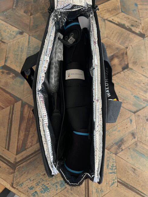NOWE getry Waldhausen Health + Care - Zupełnie nowy, oryginalnie zapakowany ochraniacz Waldhausen Health and Care z powerbankiem, kablem do ładowania i 2 cool packami (nigdy nie był na koniu) - 1 sztuka