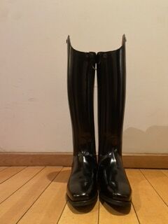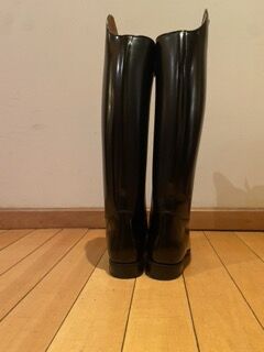 Nowe i nieużywane buty ujeżdżeniowe DeNiro BootCo "RAFFAELLO" wykonane ręcznie we Włoszech. - Profesjonalne buty ujeżdżeniowe klasy premium wykonane z wysokiej jakości skóry o eleganckim, klasycznym designie, doskonałym wsparciu nogi i wyrafinowanym wykończeniu. Stan: Zupełnie nowe - nigdy nie noszone ani używane. Starannie przechowywane w oryginalnym opakowaniu. W zestawie oryginalne pudełko DeNiro BootCo i oryginalna torba na buty. Oryginalna cena detaliczna: 640 € (patrz zdjęcie). Szczegóły: - Marka: DeNiro BootCo - Model: RAFFAELLO - Wykonane ręcznie we Włoszech. - Kolor: szczotkowana czarna skóra. - Kształt palców: Quadra. - Tylny zamek błyskawiczny z zapięciem na pasek ochronny. Rozmiar i dopasowanie: - Rozmiar: EU 43. - Dopasowanie: C-M (średni wzrost i łydka). Wymiary ok: - Wysokość wału: około 48 cm (patrz zdjęcie). - Obwód łydki: około 40 cm. Elegancki prosty wałek ujeżdżeniowy zapewniający doskonałą pozycję nogi i wsparcie. Idealny do zawodów ujeżdżeniowych lub profesjonalnego treningu. Wysyłka: Wysyłka na terenie Hiszpanii i Europy dostępna. Buty zostaną starannie zapakowane, aby zachować swój kształt podczas transportu. Śledzona i ubezpieczona wysyłka po rzeczywistych kosztach. Lokalizacja: Hiszpania. Cena: 489 € - otwarte na rozsądne oferty. Cena ustalona realistycznie zgodnie ze stanem i oryginalną wartością detaliczną. Prosimy o dokładne porównanie wymiarów przed zakupem.