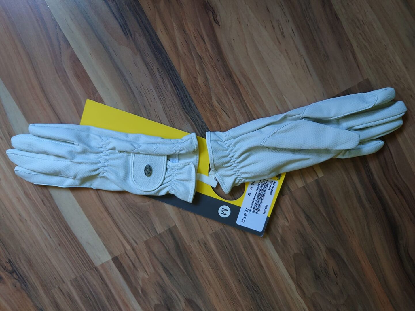 Nowe rękawiczki jeździeckie, rozmiar M - Rękawiczki jeździeckie Felix Bühler, Rio Grip, całoroczne, białe, rozmiar M