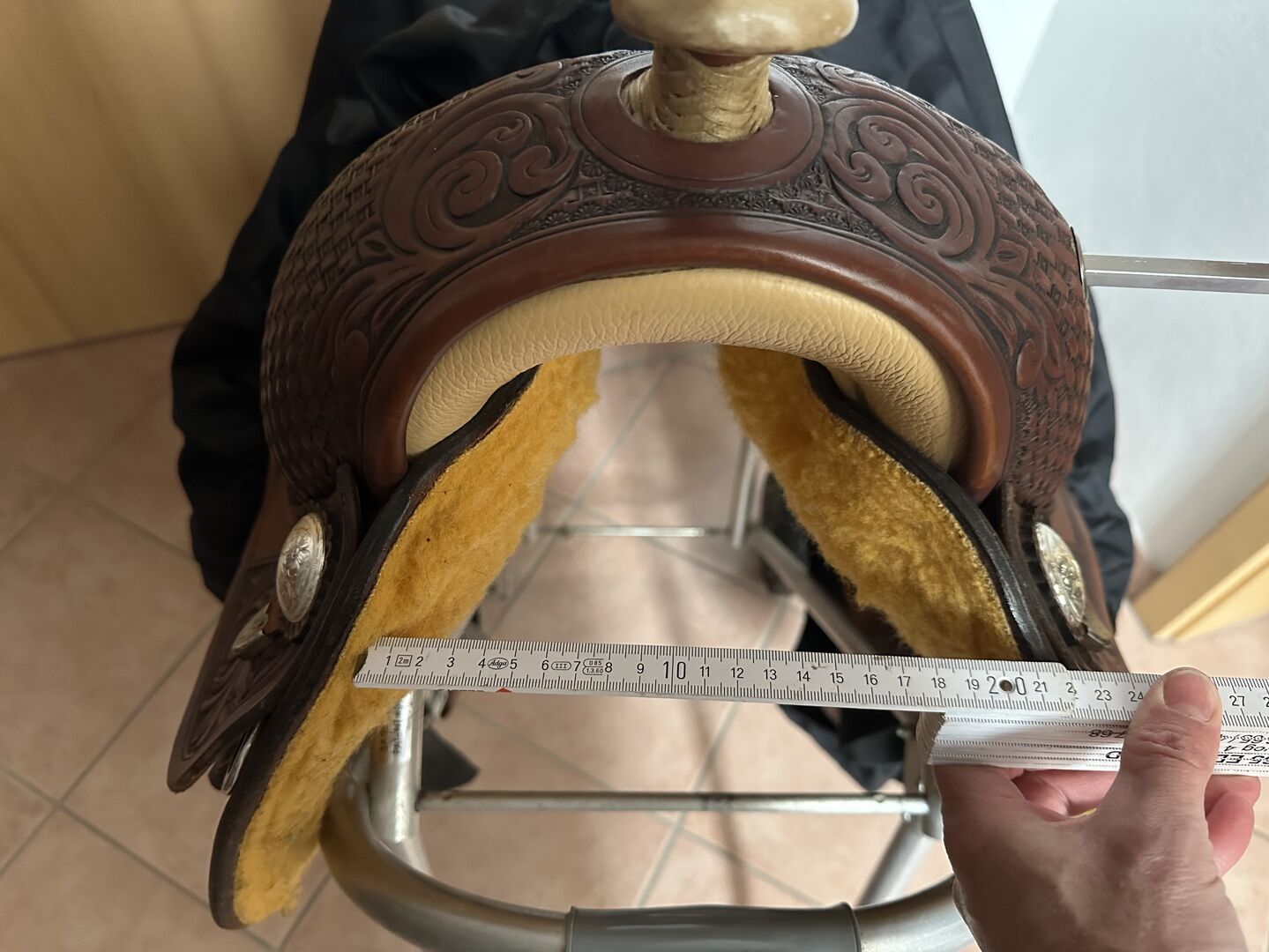 Nowe siodło westernowe Deuber & Partner Flex Fit Vario Equitation Trainer - Sprzedaję moje siodło pokazowe w najlepszym stanie od Deuber und Partner Flex Fit Vario 2213 - Equitation Trainer with Equitation Seat. Siodło było bardzo mało używane z powodu choroby mojego konia i jest w idealnym stanie. Przez większość czasu było tylko w domu. Siodło było zawsze odpowiednio pielęgnowane i przechowywane tylko w pokrowcu ochronnym i jeżdżone z podkładką pod siodło. Niewielkie ślady użytkowania są jednak obecne.