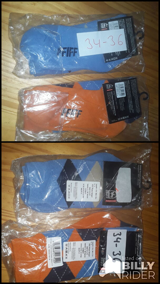 Nowe skarpety jeździeckie rozmiar 34-36 - Sprzedam 2 pary nowych, nieużywanych skarpet jeździeckich. Rozmiar 34-36. Niestety za małe dla nas. Cena za oba razem 10 € stała cena plus wysyłka 6 € Zapytania takie jak ostatnia cena lub bez przyjaznego pozdrowienia nie będą odpowiadane Nie ma możliwości wymiany! Sprzedaż prywatna bez gwarancji lub zwrotu bez gwarancji