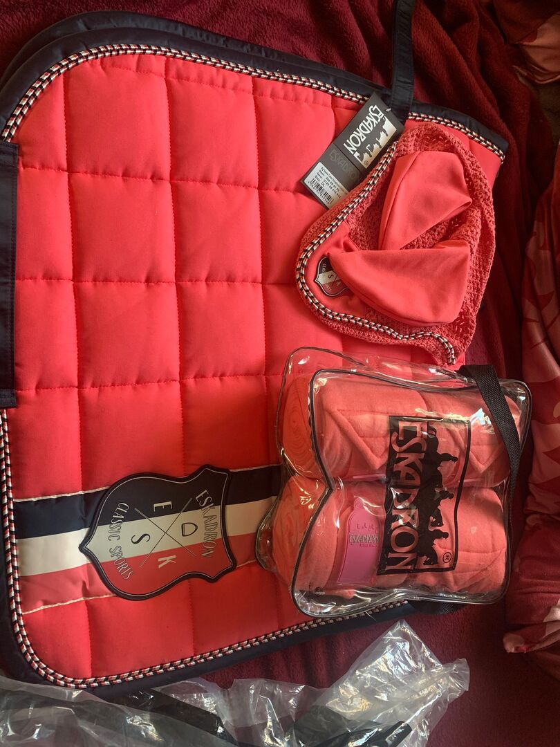 NOWOŚĆ! Eskadron Big Square Cotton Saddle Pad SET - Sprzedaję mój piękny zestaw podkładek pod siodło firmy Eskadron. Nigdy go nie rozpakowałam, ponieważ kupiłam kilka podkładek pod siodła, które po prostu mi się spodobały. W końcu po prostu wylądowały w mojej szafie.