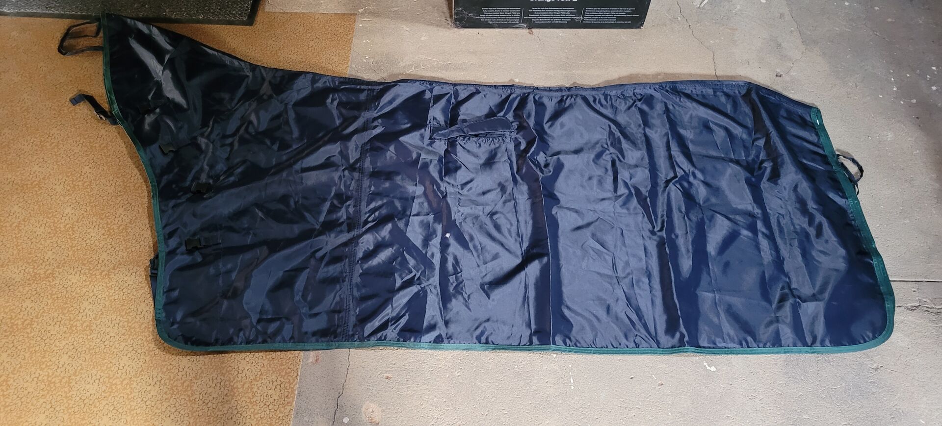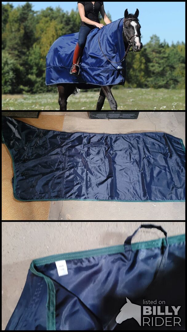 Nowy dywanik do jazdy w deszczu gr 135 - Rain Protector to wodoodporna, oddychająca i lekka derka sprawia, że koń jest suchy. Idealnie nadaje się na zawody. Koc wykonany jest z lekkiego i wodoodpornego materiału.
