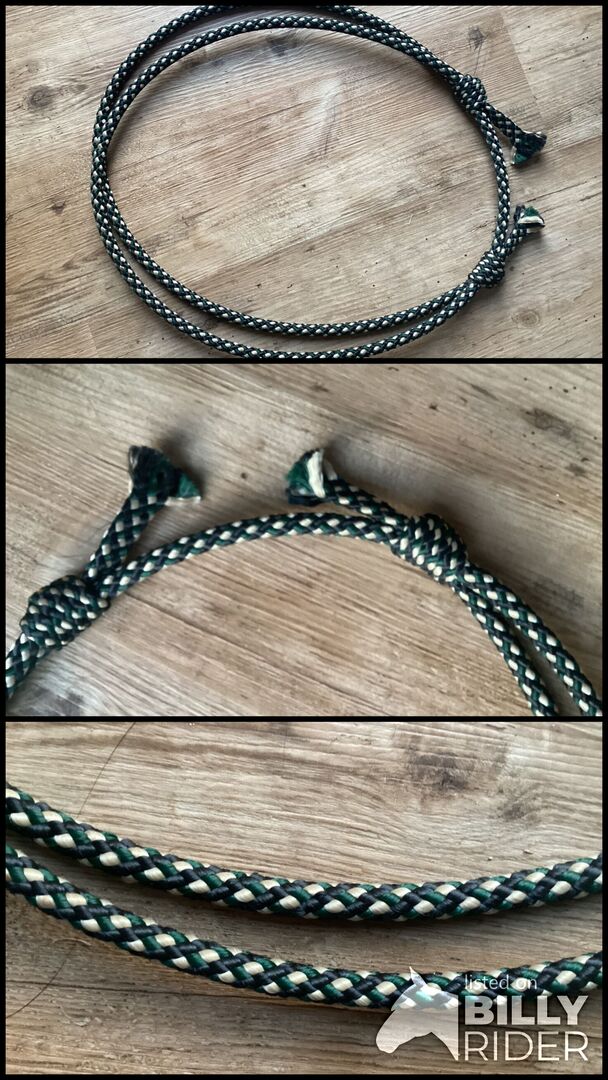 Nowy pierścień na szyję - Nowa, nieużywana obręcz na szyję, regulowana, materiał liny przyjemny, zielony wzór, idealna do treningu na ujeżdżalni.