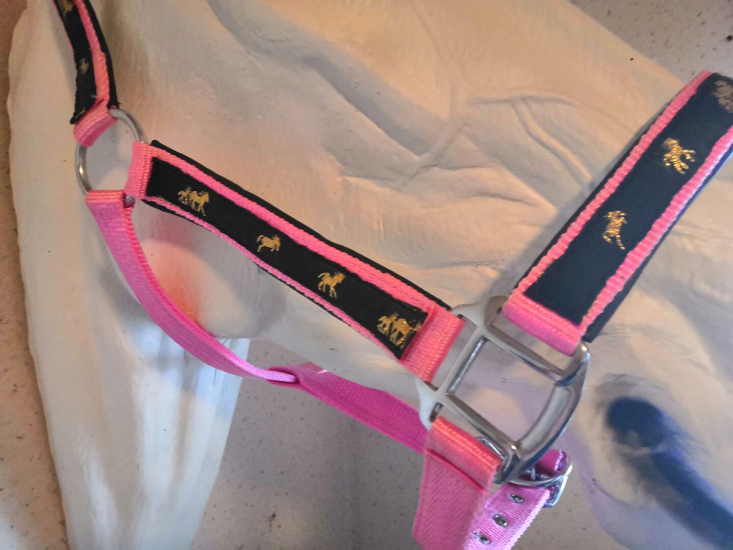 Nylonowy kantar z aplikacjami rozmiar Full - Dwukierunkowa regulacja za pomocą sprzączek, miękkie podszycie nosa i policzka, chromowane okucia, piękne aplikacje z motywem konia