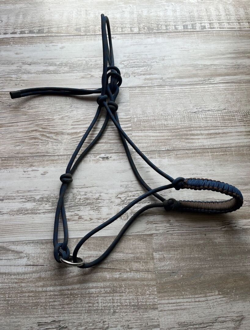 Obroża z węzłem, niebieska, WB - Kupiłem mój Knotenhalfter w kolorze blau/braun mit Ring. Kupiłem go latem 2025 roku i jest w bardzo dobrym stanie.