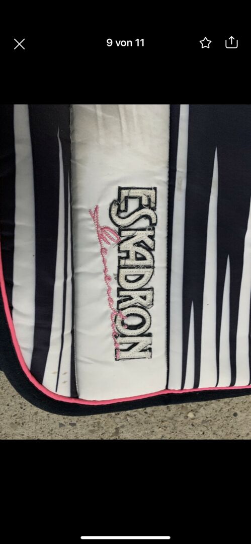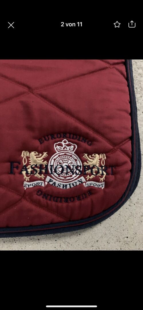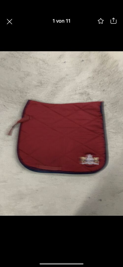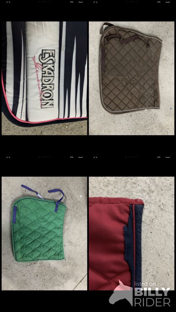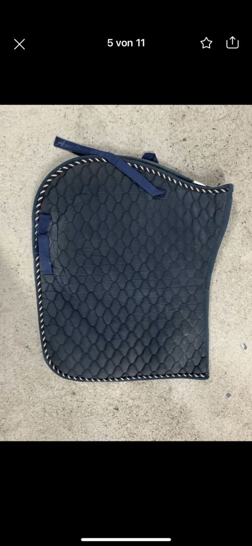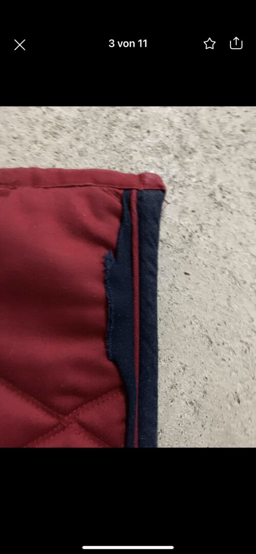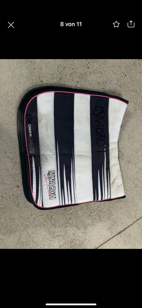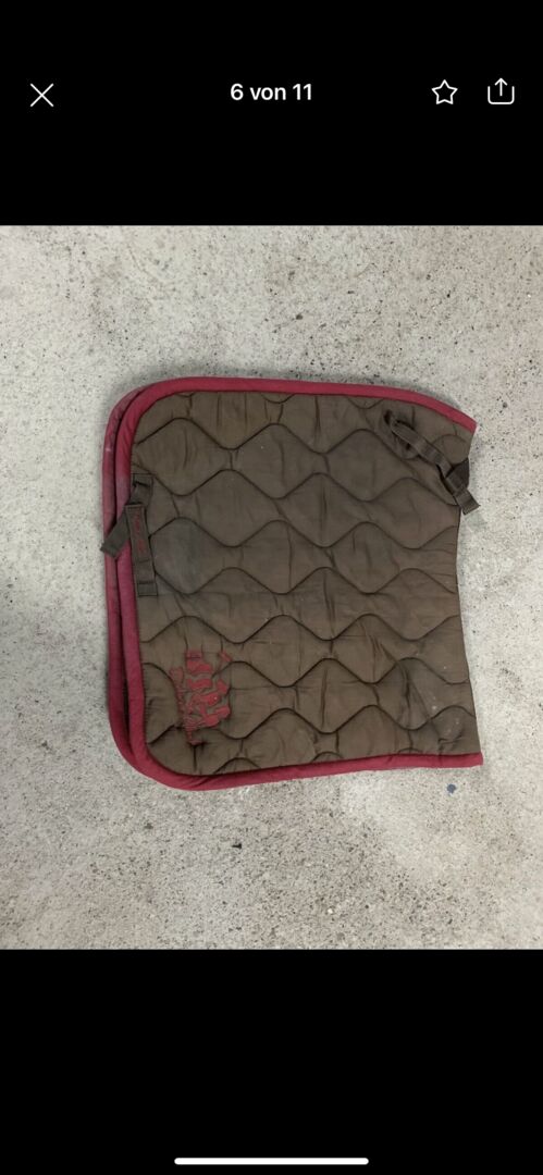 Obrusy na siodła - Pierwszy podkładka pod siodło od Euroriding w pełnym ujeżdżeniu. Szew na klapie poluzował się, ale jego ponowne przyszycie nie powinno sprawić trudności.