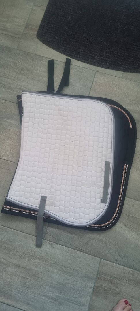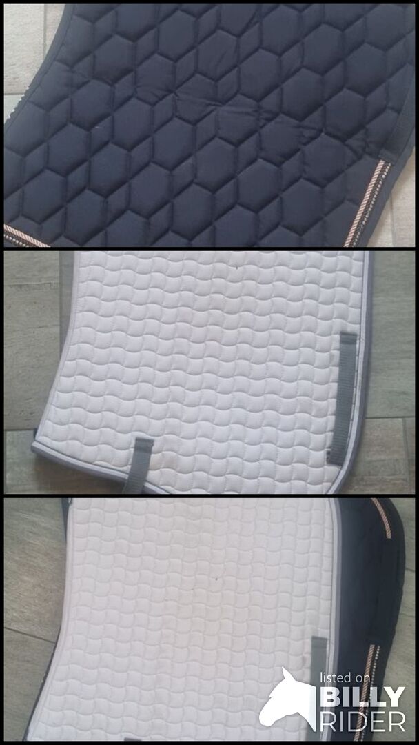 Obrusy na siodła - Oferuję 2 różne podkładki pod siodło w 2 rozmiarach. 1x duży w kolorze niebieskim i 1x mały w kolorze różowym. Stan jest jak nowy, ponieważ prawie nie używane. Zestaw: łącznie 25 euro, ale indywidualnie jest również możliwe (niebieski: 15,- / różowy: 10,-).