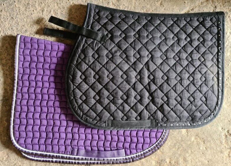 Obrusy na siodła dla kucyków - Sprzedam tutaj dwa podkładki pod siodło dla kucyków W czarnym brakuje 2-3 kamieni - 5,00 € Fioletowy Eskadron - 10,00 EUR