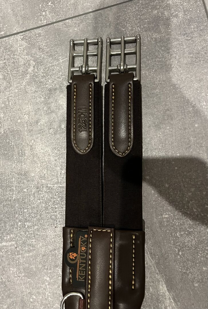 Obwód dla młodych koni Kentucky 125cm - Popręg dla młodych koni został opracowany specjalnie dla młodych koni. Ma gumkę tylko z jednej strony. Był założony na konia tylko raz. Brak śladów zużycia. Rozmiar 125 Nowa cena 109,99€